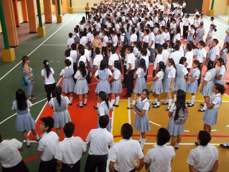 Estrenando el entechado de la cancha múltiple de nuestra Institución